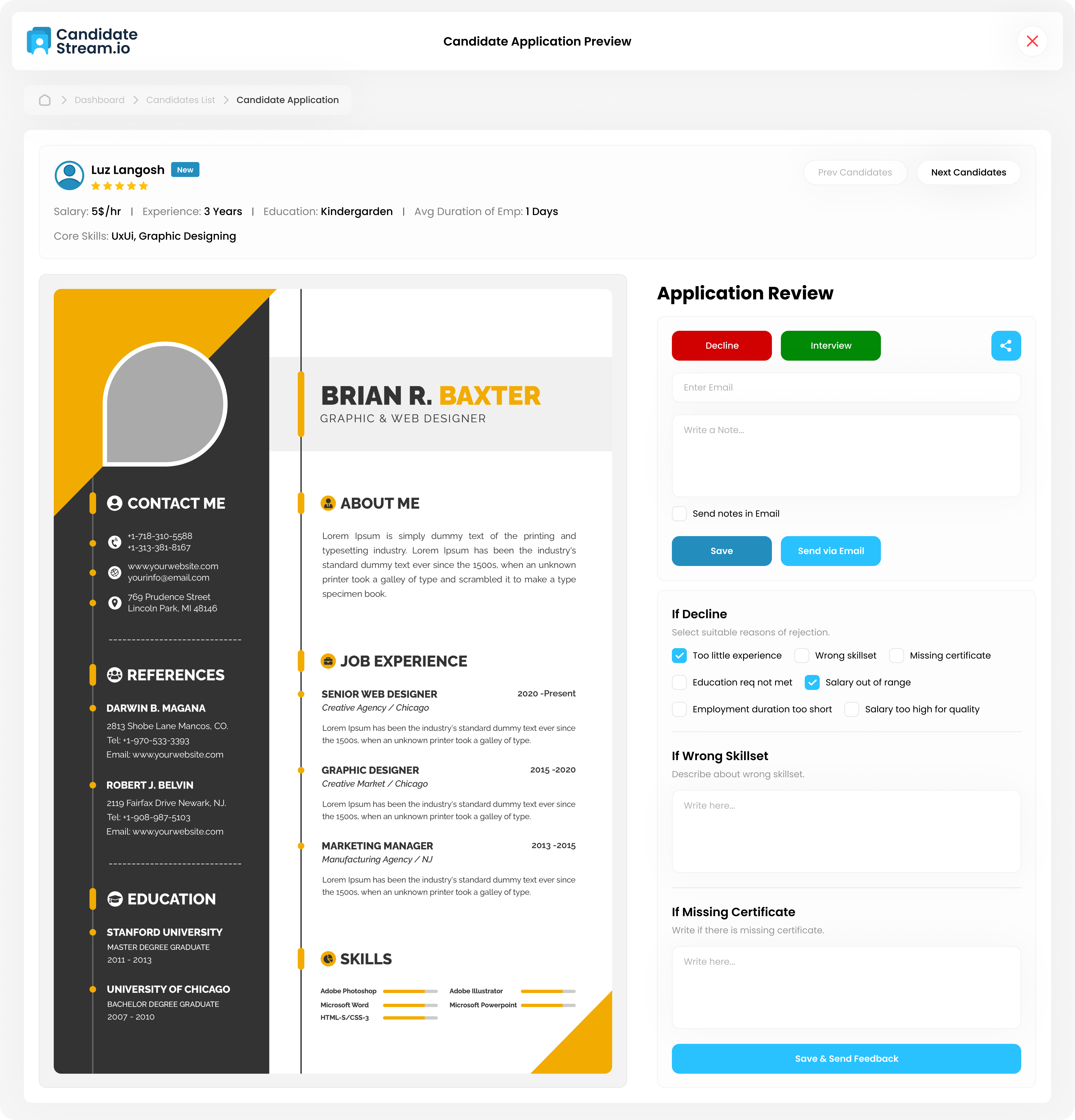 Empower reviewers to give instant feedback on detailed candidate profiles, streamlining the review process for quicker, informed decision-making.